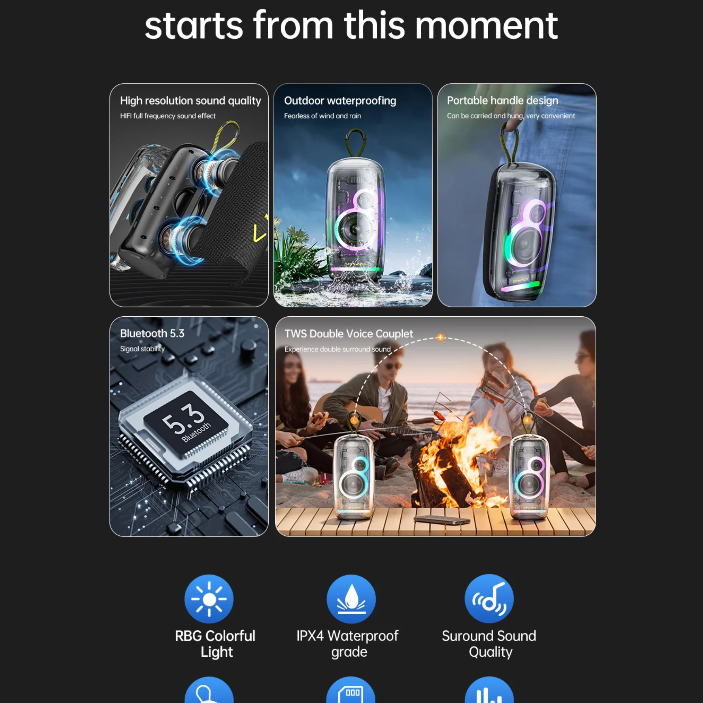 - Colorful Lighting: This speaker offers eye-catching light, bringing joy and delight to your life